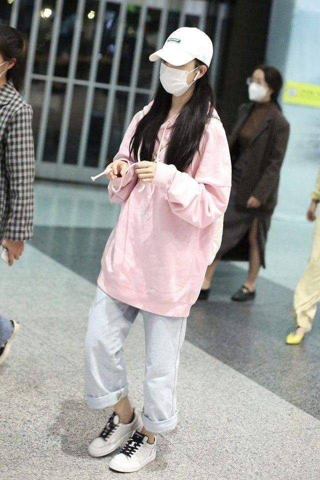 在双清市的机场,一位身着粉色上衣,着阔腿裤,头带白色简款帽子,脸戴口罩的少女正拖着一个偌大的行李箱在行走着