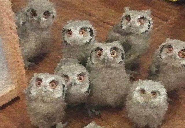 你听到门外有动静,一打开发现……超级多的猫头鹰同时盯着你