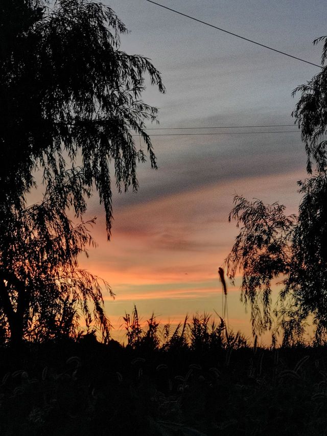运气好的话,天边会出现火红的落日,各种薄薄的颜色叠加在一起,云朵稀松的挂在天上。简直美不胜收。