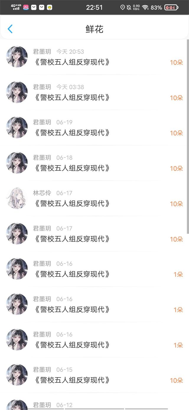 作者再次感谢这位叫君墨玥的粉丝送的花花!