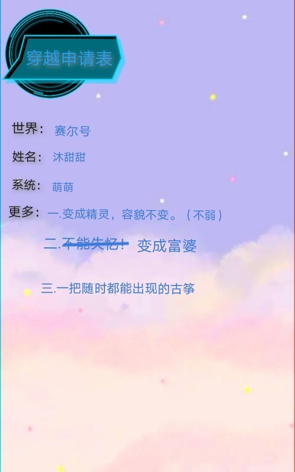 阎王这是你的穿越申请表,是赛尔号,要求记在下面就行(挥手)这是你的系统,萌萌。(消失)
