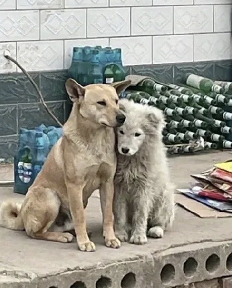 马嘉祺看了一眼,是一只萨摩耶和一只黄狗,两个狗狗依偎在一起,他笑了:
