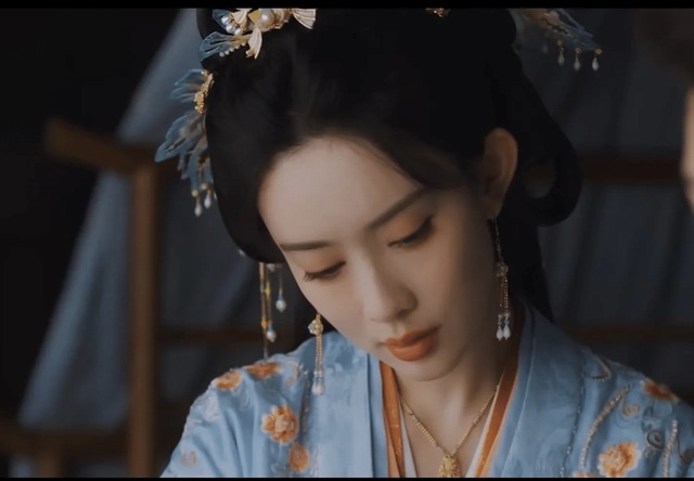 发髻梳成精致的随云髻,簪着一支羊脂白玉雕成的玉簪花步摇,花蕊处点缀着细小的米珠,随着她的步伐轻轻摇曳,清冷而不失贵气。