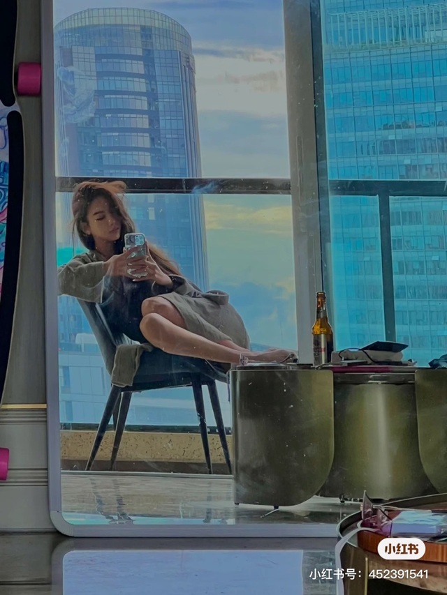 洗完后,晚柠点了根烟,坐在沈翊的桌子等着他