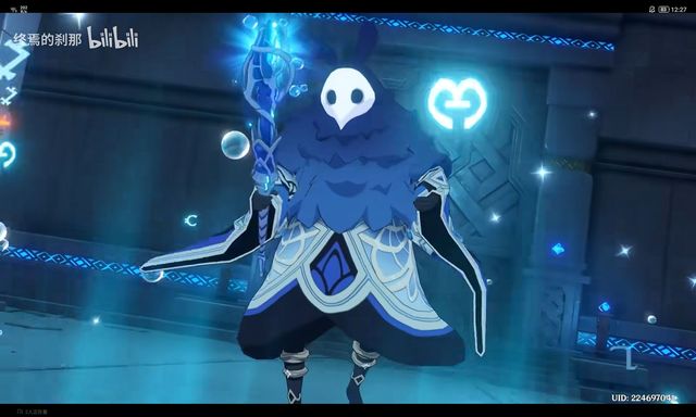 只见后面出来一只穿着蓝色狍子,手上抓着法杖,戴着一个白色面具,头上似乎还长着一对耳朵的……毛茸茸?