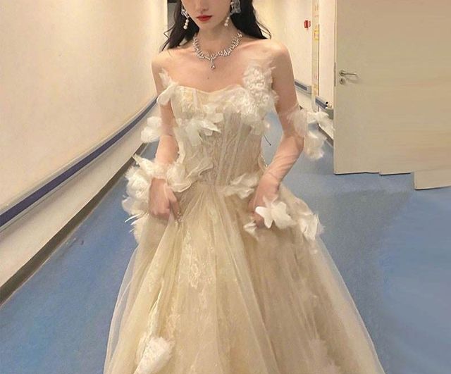 金初珍择穿上提前准备好的礼服