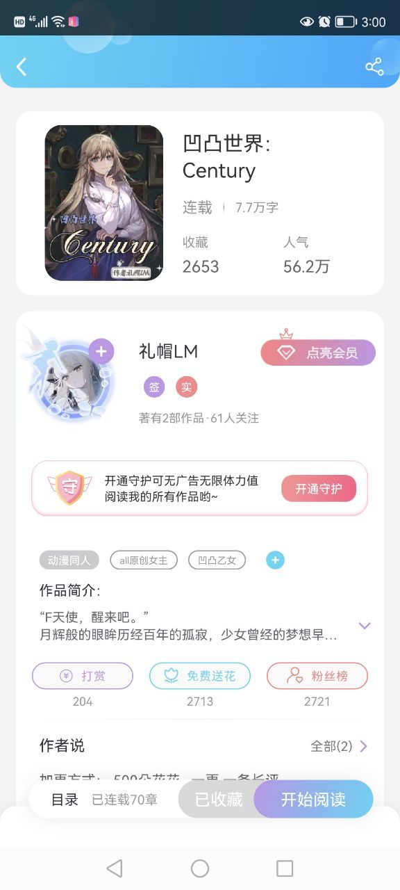 作者“属于凹凸乙女篇,不玛丽苏,就是有很长一段时间没更新了。”