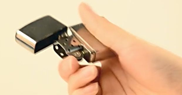 .打火机抵住中指中外侧,拇指推底刻位置,点燃火焰