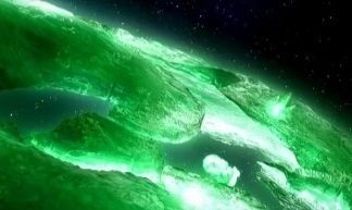 奥特之星整颗行星都被人工太阳释放出的绿色迪法勒塔光线包围,在本就空旷的宇宙格外耀眼。