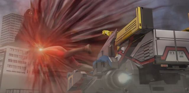 山濑明日奈驾驶博尔特斯向贝姆斯塔发射光线,可攻击怪兽的光线都被它尽数吸收、反弹了回来——
