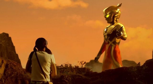 所以现在的情况是——沉迷颜值无法自拔的高田琉依深情地盯着巨人形态的赛罗;再遇故人的赛罗视线紧锁地面上的千奈蒂娅;相对无言的千奈蒂娅则是望着旁边旁若无人、花痴的高田琉依……三角关系极其稳定。