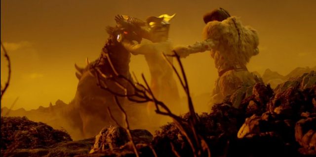 纳克尔星人刚爬起来就立刻命令站在远处的布莱克王向赛罗发动攻击!