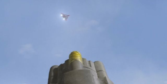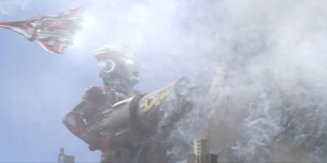 卢迪玛瞬间失控,挣脱艾克斯奥特曼的钳制,抬起手中的炮弹瞄准了空中的空战马斯凯迪号