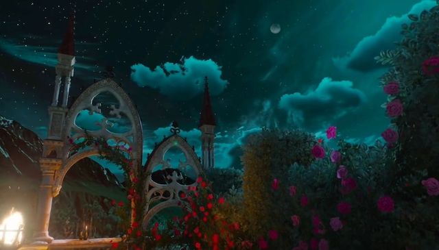 白漆壁栏爬满了翠绿的苔藓、疯长的玫瑰丛…显然已经荒废很久了。