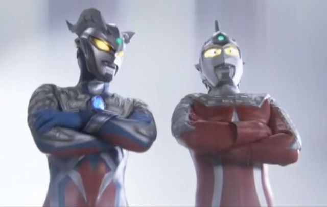 奥特赛文和赛罗一起观看了雷欧奥特曼的历史。
