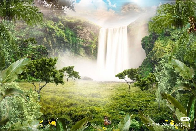 岛屿地形:多树木丛林地带,也有少数的瀑布