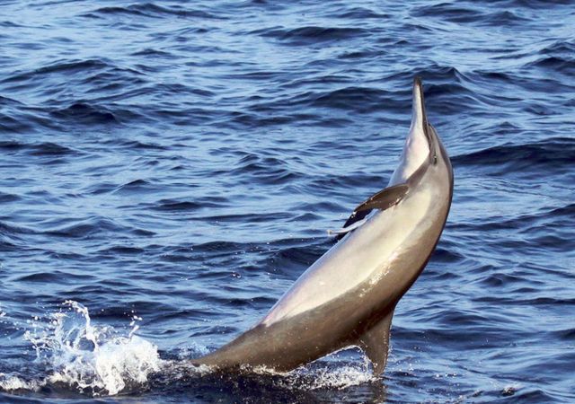 过了一段时间海豚跃水面结束了