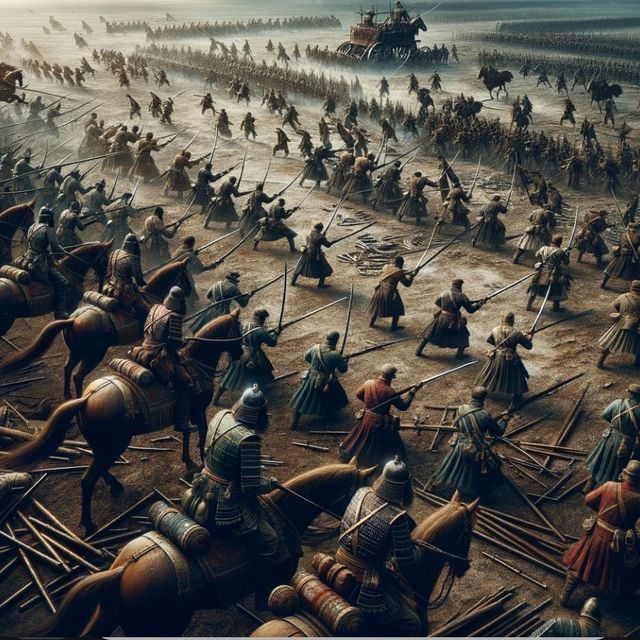 而林道荣与林一所率领的军队以各自吹响号角为响,两军对垒,紧张气氛弥漫于战场……
