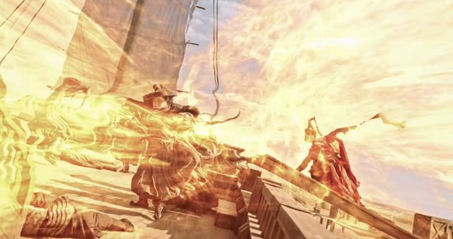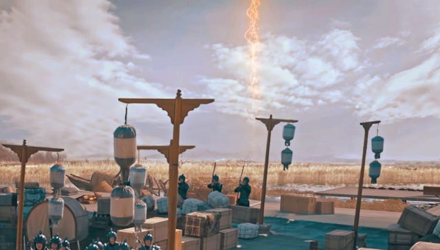 廿白羽和几个月影卫正要抬起跳板,突然一个方士装扮的红衣女子从天而降,周身迸发出一道强烈的金光,霎时间击倒了一片。