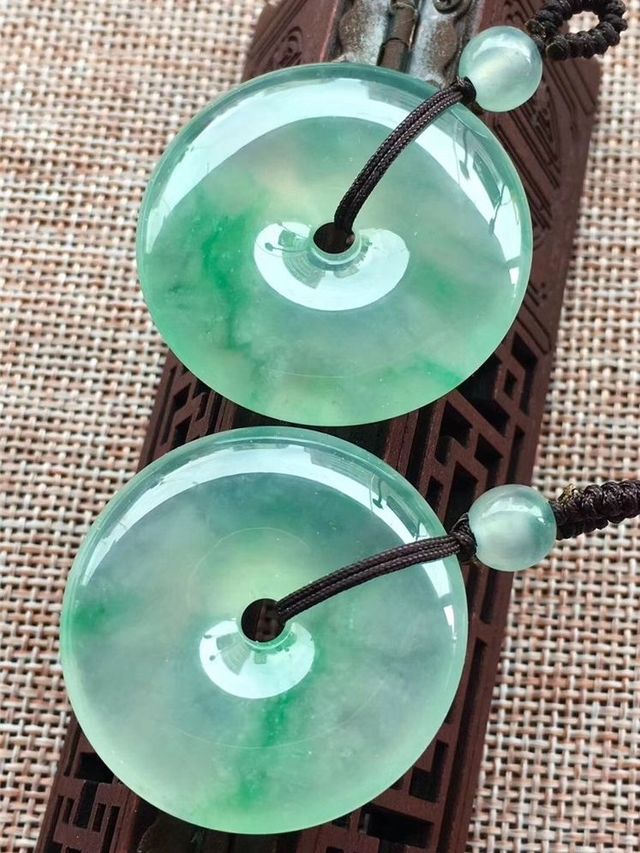 宋亚轩从衣袖里摸出一对翡翠平安扣,这对玉形状圆润,仿佛整块玉里都浸着水一样,水润且有光泽,颜色墨绿剔透,被匠人精心打磨散发出一阵若有若无的灵气。