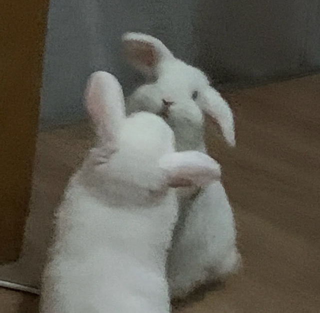等她离开后,崔秀彬用他兔子原型的躯体走到全身镜前,看着镜子里的原型,摇摇兔脑袋,伸伸兔爪爪。