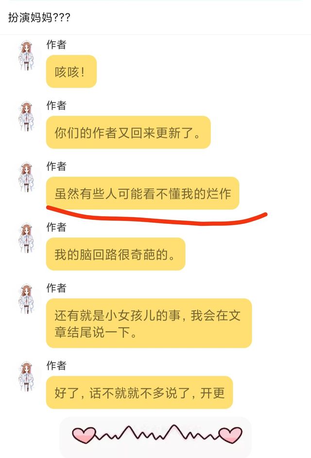 作者她竟然说了一句,“看来这个作者还有点自知之明。”