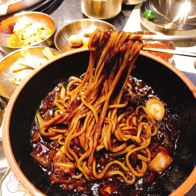 在两人欢声笑语的间隙,两份炸酱面已经在桌子上了