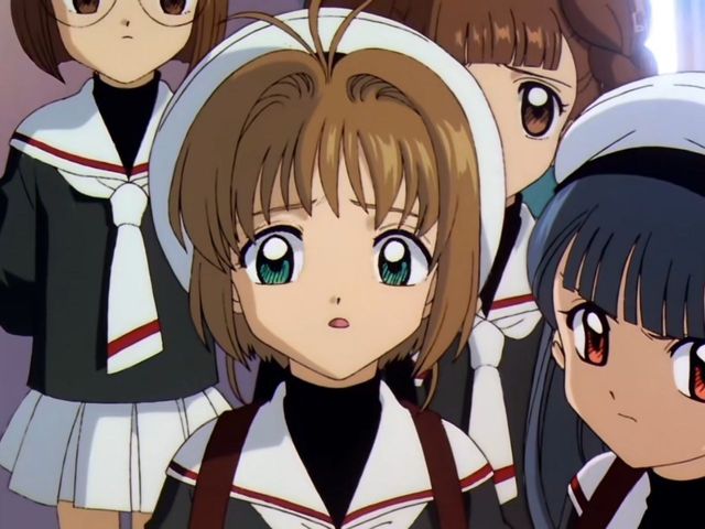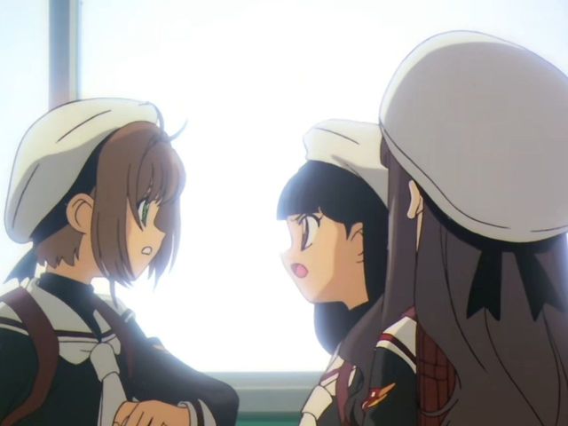 校园里神野结香和木之本樱刚好碰到了同样时间上学的大道寺知世。