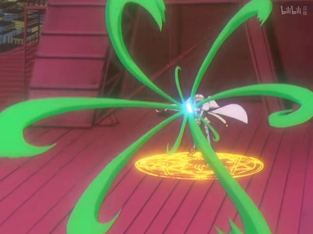 树牌在木之本樱的咒语下朝着月攻击,可它本就不是攻击类型的牌,看上去软绵无力。