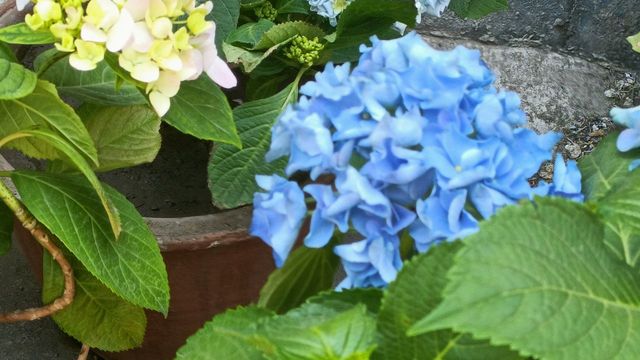 他告诉你按左边的第二个按钮,你听着他说的,紧张的对着远处的一片茶田拍了一张照片。