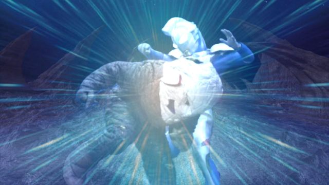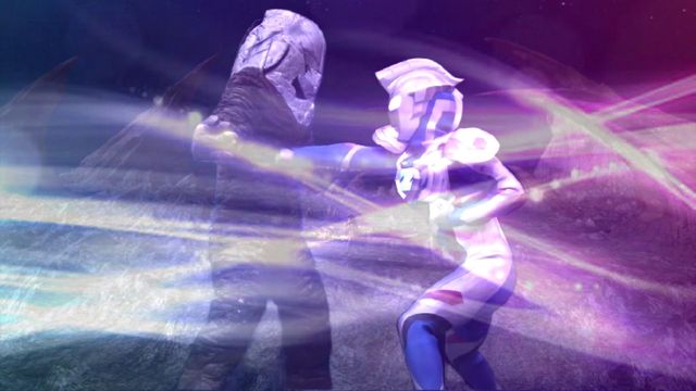 泽塔对立面,扎拉布星人突然一个闪身到泽塔面前,迎面就是双手探出与泽塔来了一个极度碰撞!