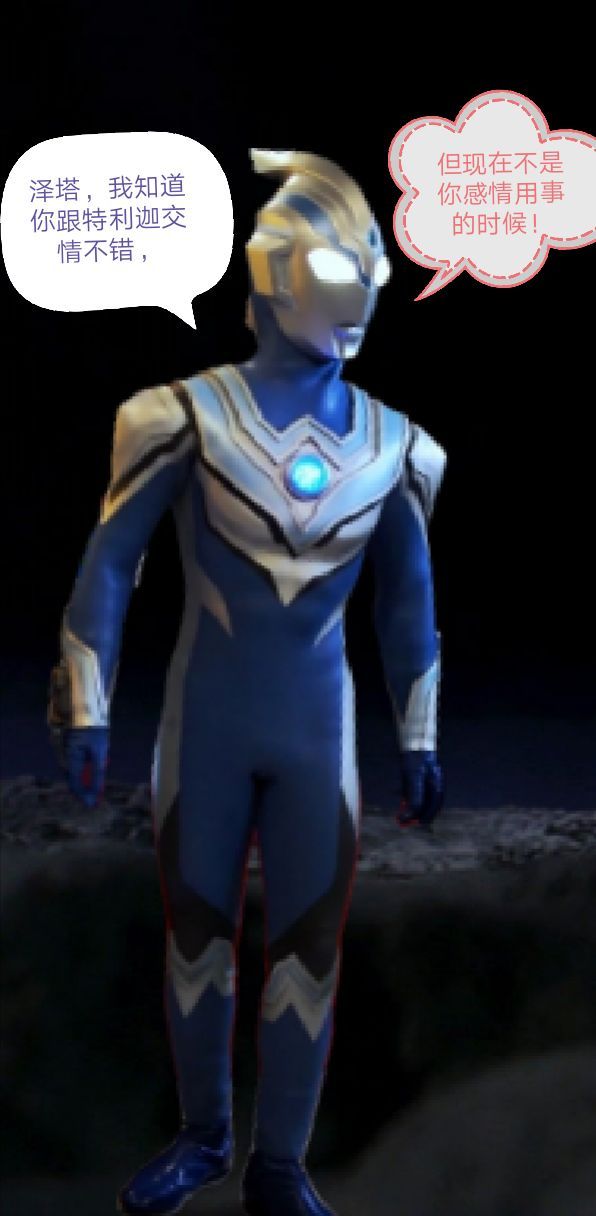 泽塔·奥特曼泰迦前辈,我绝对相信特利迦,他是绝对不会做出那种事情出来的!这当中一定有什么误会!