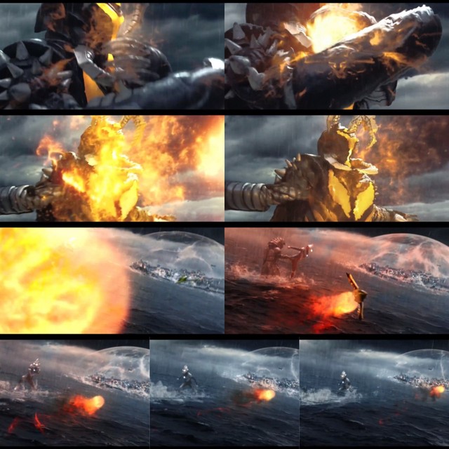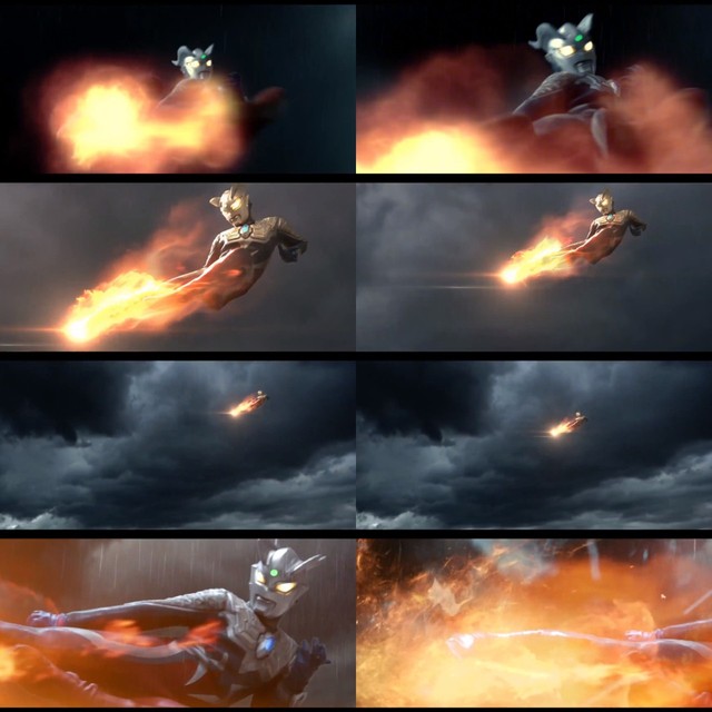 从图中我们不难看出,飞燕一号完美且安全避开了EX芝顿的强力火弹,而我们的迪迦奥特曼,似乎也是知道那枚强力火弹的攻击去向,但他似乎并不担忧,因为……