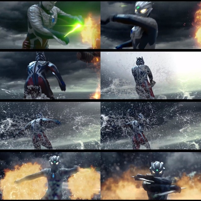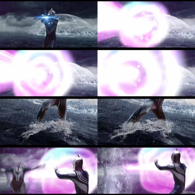 位于艾美拉鲁达皇宫周边的一片汪洋大海中,我们的泽塔奥特曼按照事先商量好的作战计划率先变身迎敌。待得他变身后的第一时间,我们的主角迪迦奥特曼,也相继而变。