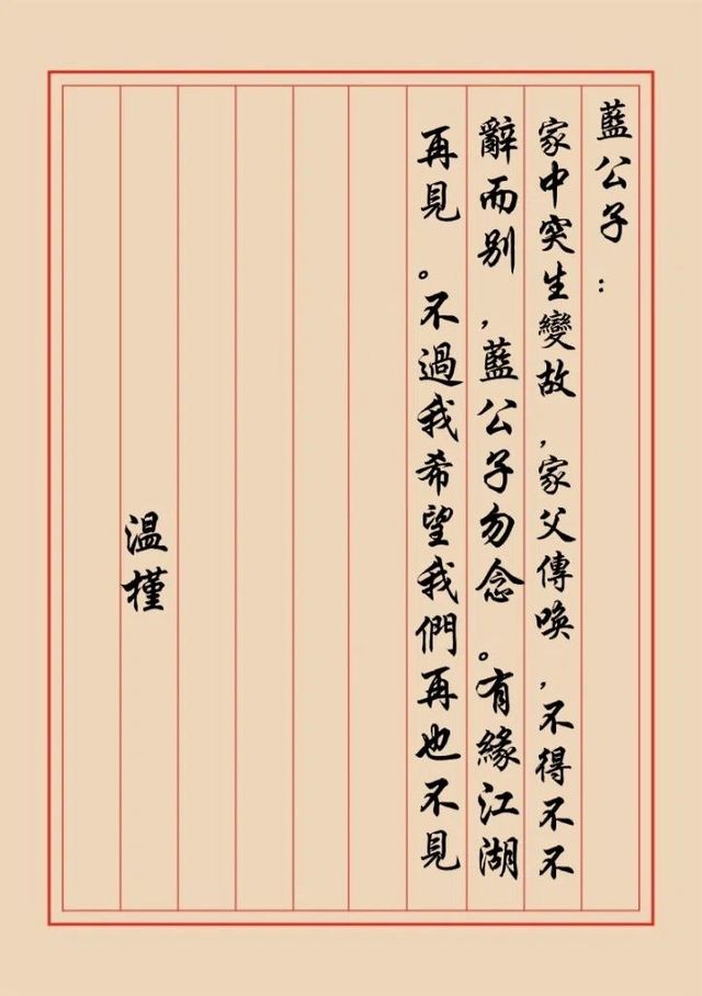 当天晚上,温槿只在桌上留了一封道别的信,就离开了云深不知处