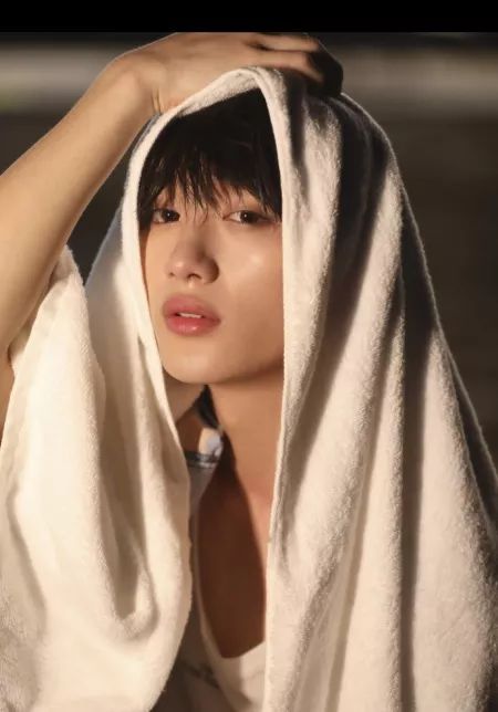 而手还被压住的丁程鑫,看了看面前被遮住半张脸的菩提,浴巾外只剩下菩提的鼻尖和粉色的唇。