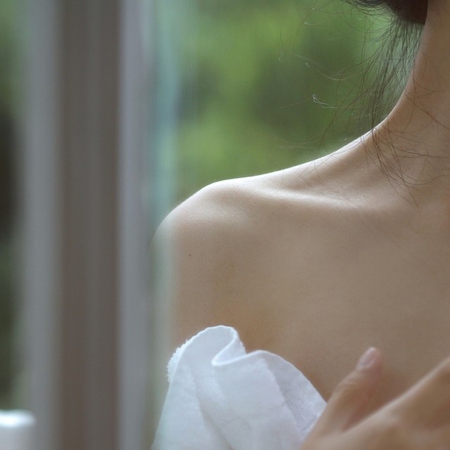 用花洒给她冲洗皮肤。