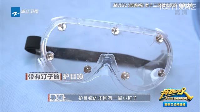 导演组等下接受惩罚的成员带上护目镜,护目镜的周围有一圈小钉子。