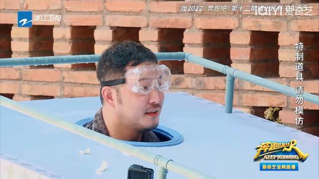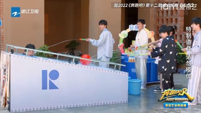 导演组其他成员用水枪把台面上的一些气球,打到他把那个钉子扎破就行了。
