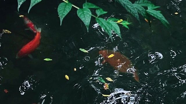 光看这个水池的颜色好像很脏,但又能把鱼儿看得一清二楚。