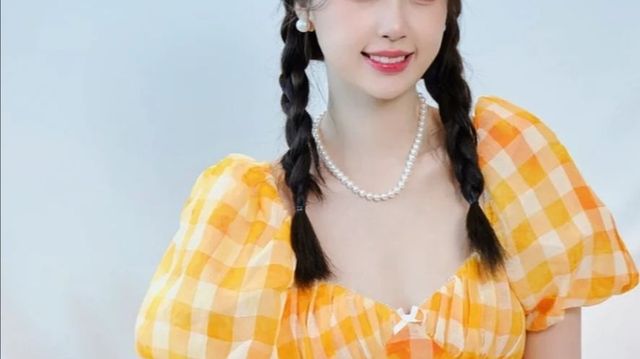 女孩穿着一条小裙子,小脸圆圆,还编着非常可爱的麻花辫。