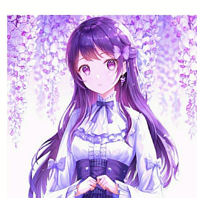样貌 是一种无法用语言形容的美 无法描述的美 神秘梦幻高贵的气质清新脱俗有一头顺柔的长发带着紫色蝴蝶更像宛如紫水晶一样的质感长到脚腕 眼睛里就像是紫色的花海一般藏着无尽的温柔和浪漫 声音就像百灵鸟一样空灵 清脆 温柔 心如止水 让人听到感觉轻飘飘的耳边带着一个紫藤花样式的耳环身形娇柔小巧五官精致身材极致火爆但总是穿着严严实实的英伦风的法式裙子袖子长道只能看到手掌裙子长到膝盖还穿着丝袜只能看手和有点婴儿肥的小脸但还是可以看出身材很好