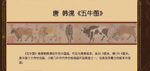 姚译添唐代韩滉的《五牛图》,是我国十大传世名画之一,也是现存最古的纸本中国画