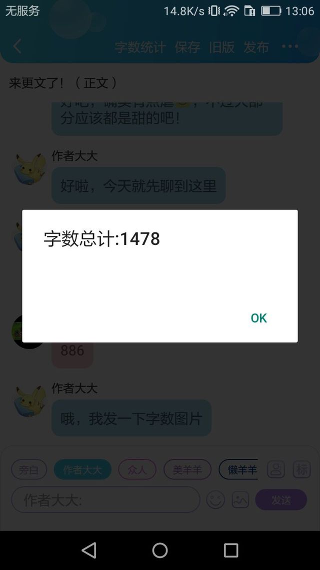 作者大大哦,我发一下字数图片