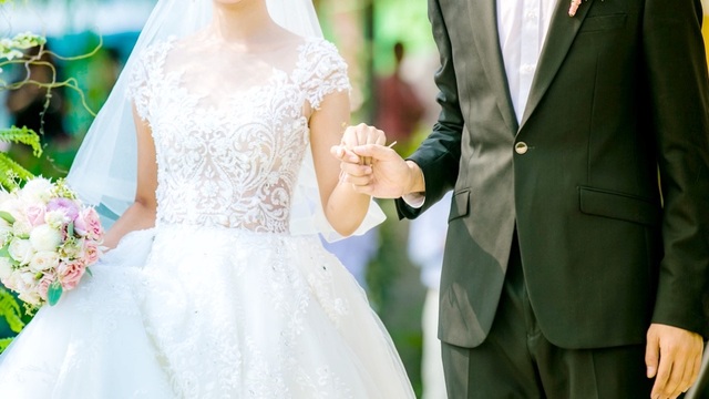 “好的,接下来,请为双方带上戒指”