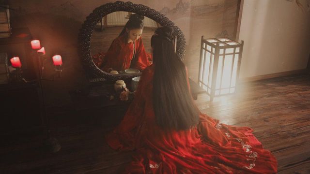 镜前的红衣女人当然是听得见动静的,她听着脚步声越来越近,轻轻笑了一声