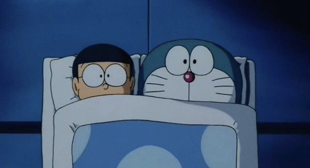 这时候,听到声音的哆啦A梦和大雄也睡眼惺忪的醒了过来