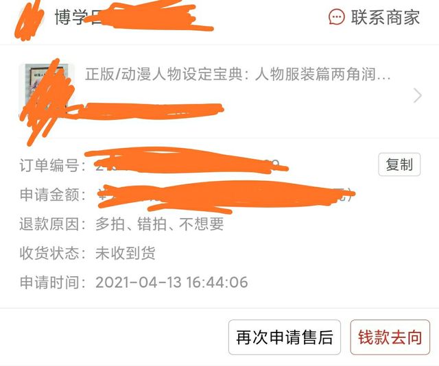 最重要的是,我让这样的商家自己找其他的店给我买一本也不愿意(我还分享给店家,她也不替我下单,就这么简单的事。),也就贵一两元,比罚款轻多了吧!没办法,退款对我有很大影响。