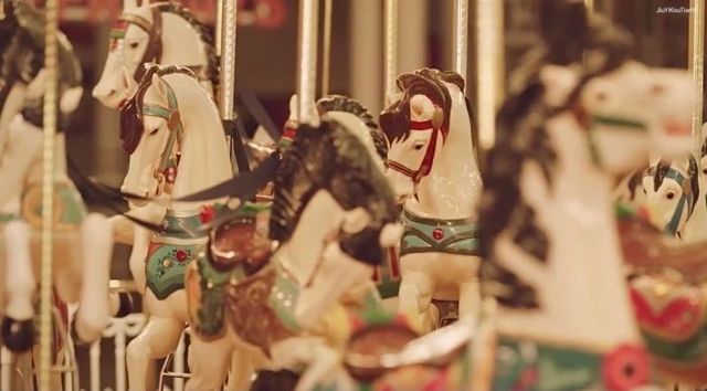 这时,不远处的旋转木马亮起一盏了灯。