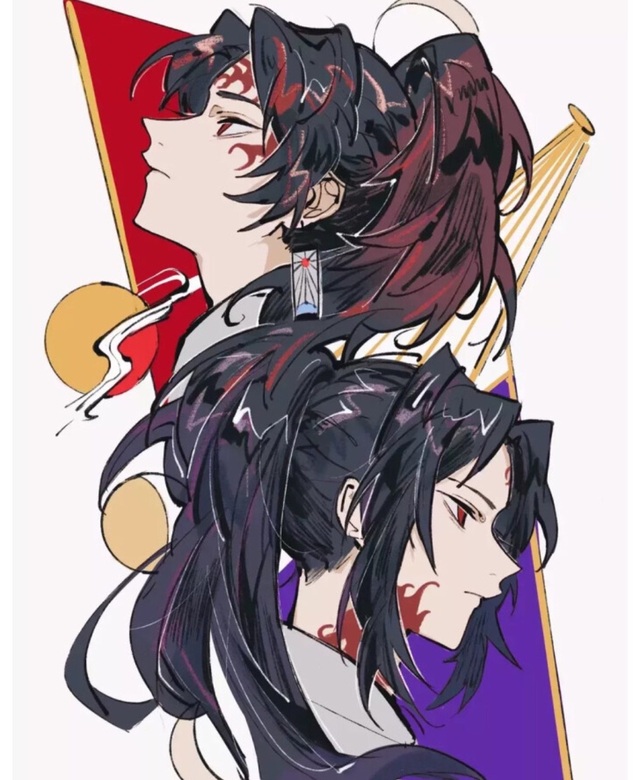 那个紫色的严胜,红色的缘一,那些没看过鬼灭的肯定疑惑这两兄弟为什么长得那么像,双胞胎再加上亲兄弟能不像吗